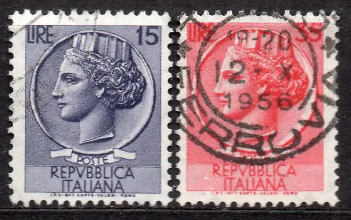 Italien, Mi-Nr. 965 + 971 gest., Italia turrita