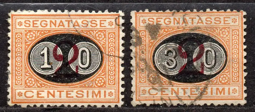 Italien, Portomarke Mi-Nr. 15 + 17 gest., Ziffernzeichnung