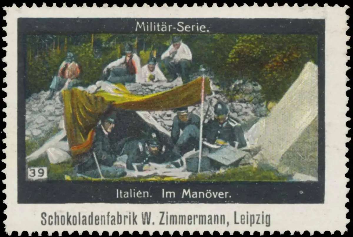 Militär-Serie, Bild 39, Schokolade, Größe/Zustand: 4x6 , guter Zustand, Original alte Reklamemarke die seinerzeit für die Werbung benutzt wurde