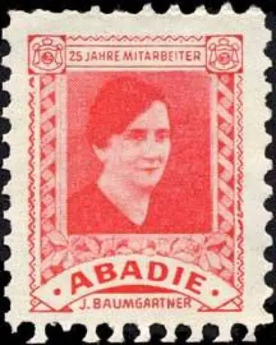 Serie: 25 Jahre Mitarbeiter, Größe/Zustand: 3x3 , beschädigt, Original alte Reklamemarke die seinerzeit für die Werbung benutzt wurde