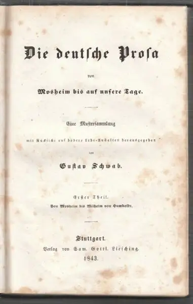 Stgt., Cotta 1861. 4. aus dem literarischen Nachlaß des Verfassers verm. Aufl. XXXII, 512 S. Ln. d. Zt. m. Rückengoldpr. Rü. gebleicht. Stellenw. stockfl.