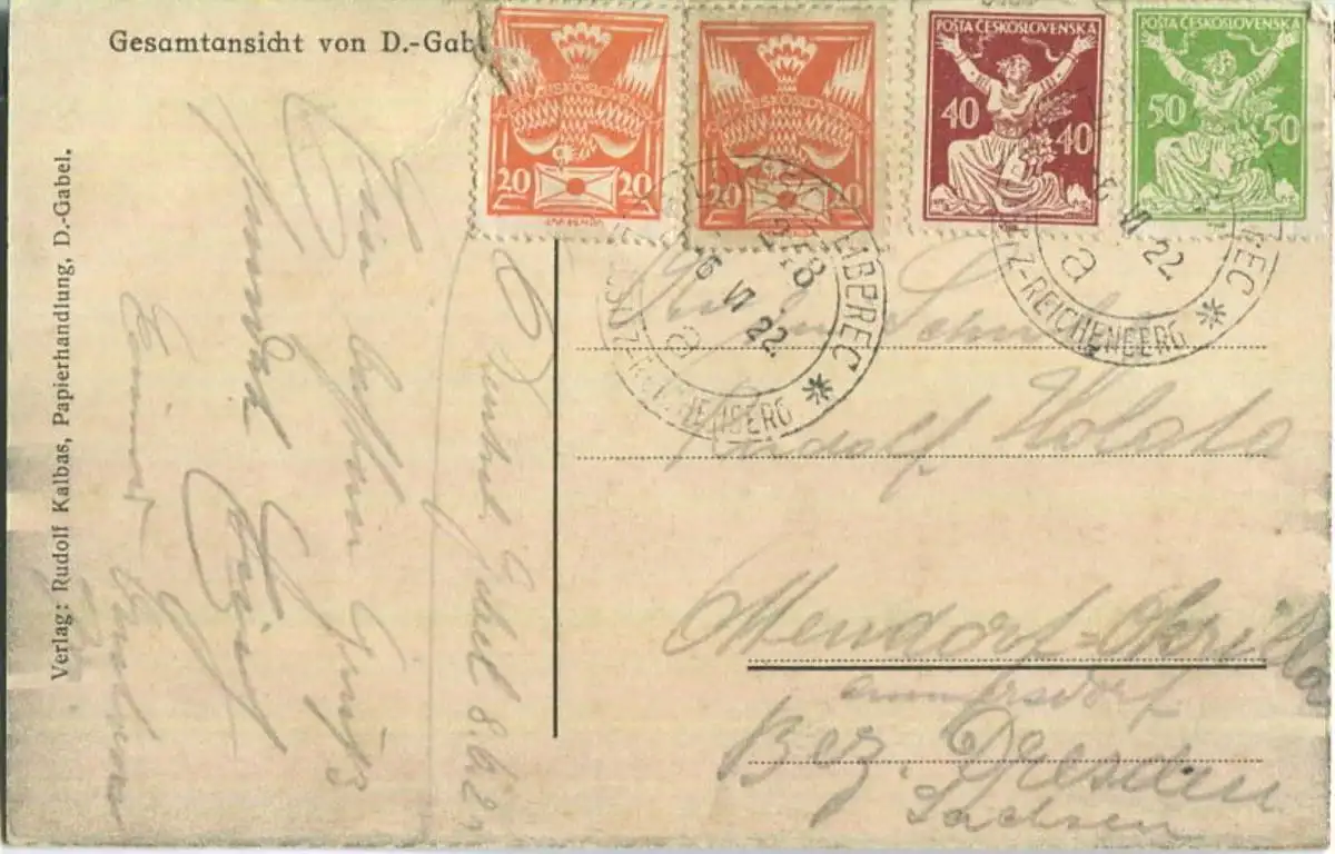 Jablonne v Podjestedi - Deutsch Gabel - Verlag Rudolf Kalbas D.-Gabel - Gebrauchsspuren(G16833) gel. 1922
