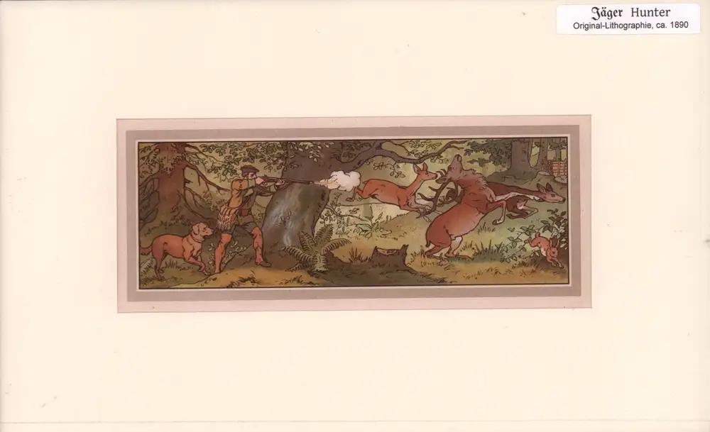 Titel: Jäger | Hunter. Original-Chromolithographie