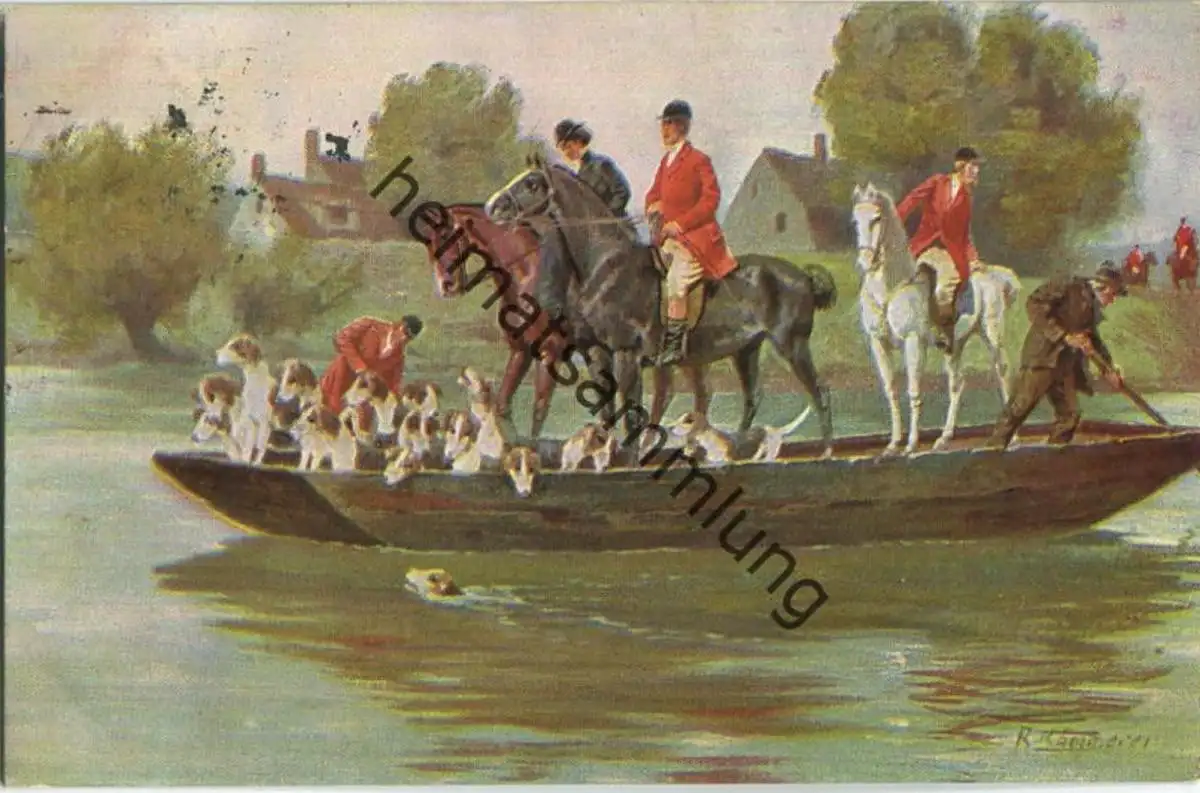 Jagd - Jagdhunde - Jäger - Pferde - signiert R. Kämmerer - Stempelspur (G48473) gel. 1914