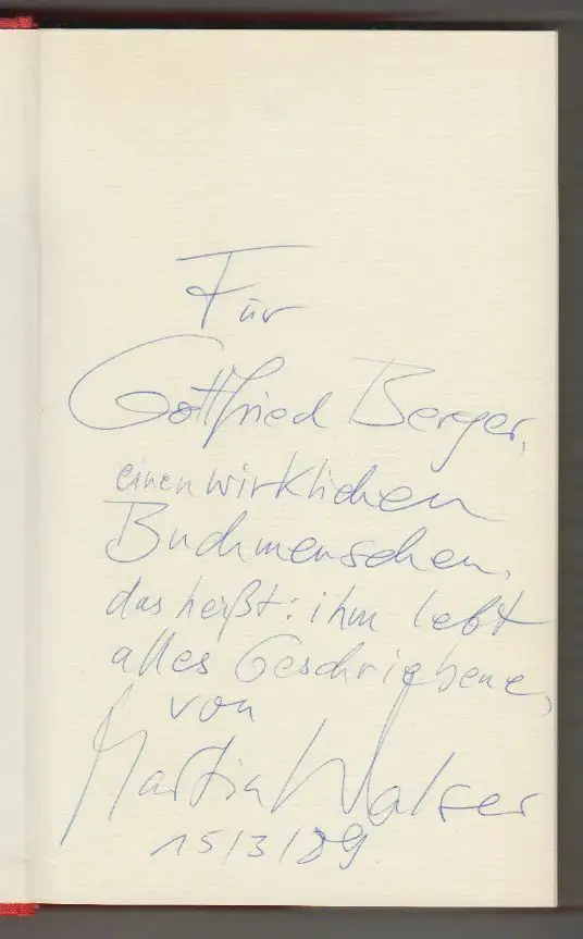 Bemerkungen: W.-G.² 58 - Mit eigenh. mehrzeiliger Widmung Walsers a. d. flieg. Vorsatz, datiert 15. 3. [19]89.