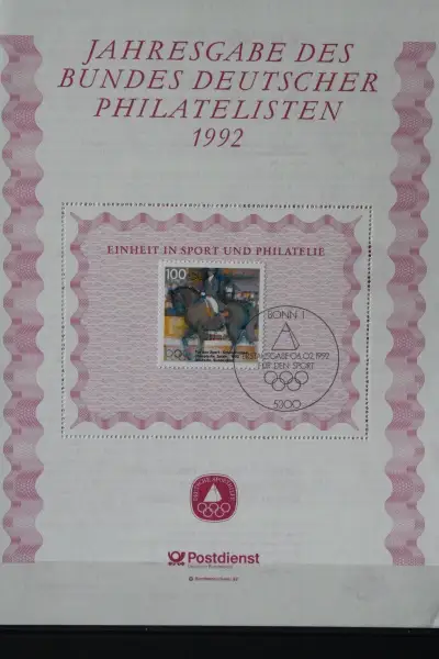 Auflage nur 100.000 Ex., nummeriert; Hergestellt in der Bundesdruckerei Berlin; in Cooperation mit Deutsche POST und Sporthilfe