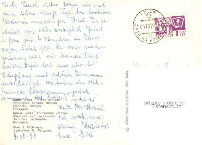 Jalta_Ukraine Hotel Jalta Jalta Ukraine postalisch gelaufen 1978 Erhaltung siehe scans [NatalD47] NataID47