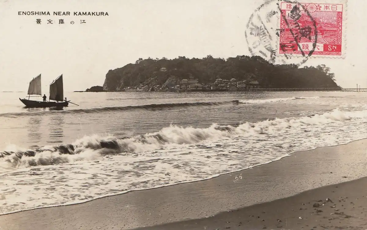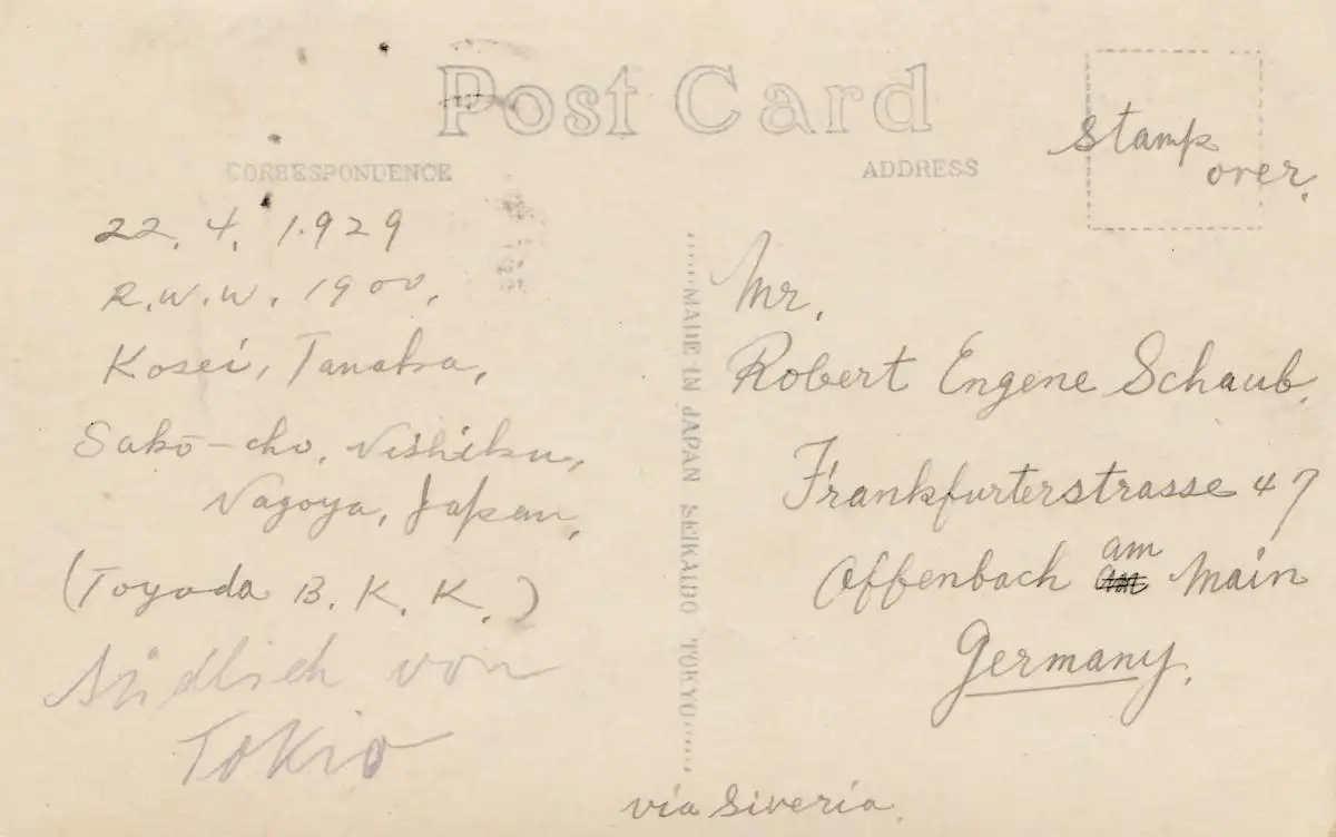 Japan post card 1929 Near Kamakura to Offenbach