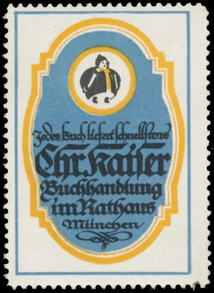 Münchner Kindel, Buchhandel, blau, rand, Größe/Zustand: 5x4 , guter Zustand, Original alte Reklamemarke die seinerzeit für die Werbung benutzt wurde