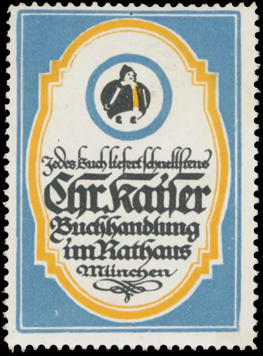 Münchner Kindel, Buchhandel, blau, Größe/Zustand: 5x4 , guter Zustand, Original alte Reklamemarke die seinerzeit für die Werbung benutzt wurde