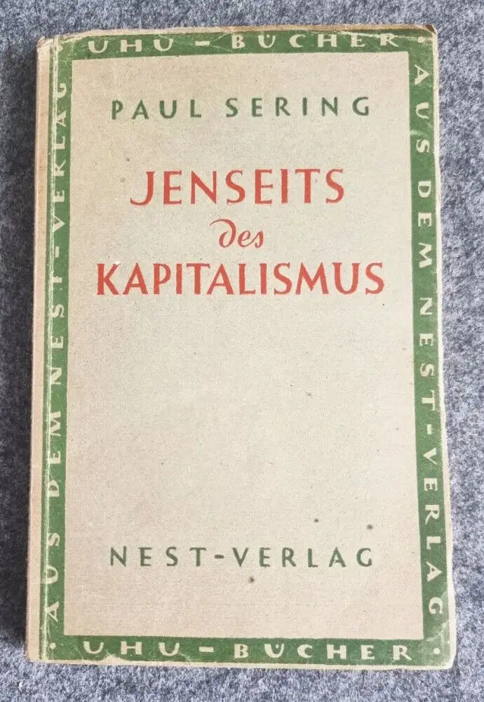 Originales Buch Jenseits des Kapitalismus, ein Beitrag zur sozialistischen Neuorientierung von Paul Sering, Nest-Verlag 1946. Abmessungen 18,5 x 12 cm, 274 Seiten. Erhaltung: etwas unsauber, abgegriffen, außen beschädigt, Seiten zum Teil am Rand etwas wellig und geknickt, leicht verfärbt und hinten beschriftet, alles weitere siehe bitte Fotos.