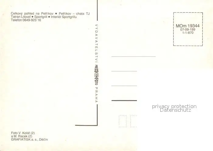 Jeseniky Petrikov chata Tatran Litovel Sportgrill Jeseniky postalisch nicht gelaufen nach 1965 Erhaltung siehe scans [WerneD78] WernPID7