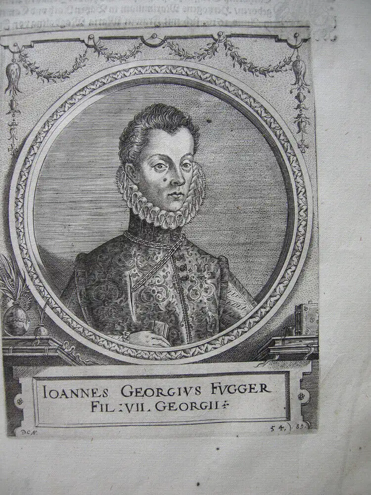 Joh. Georg Fugger (1566-1585) Kaufmann Augsburg Orig Kupferstich 1620