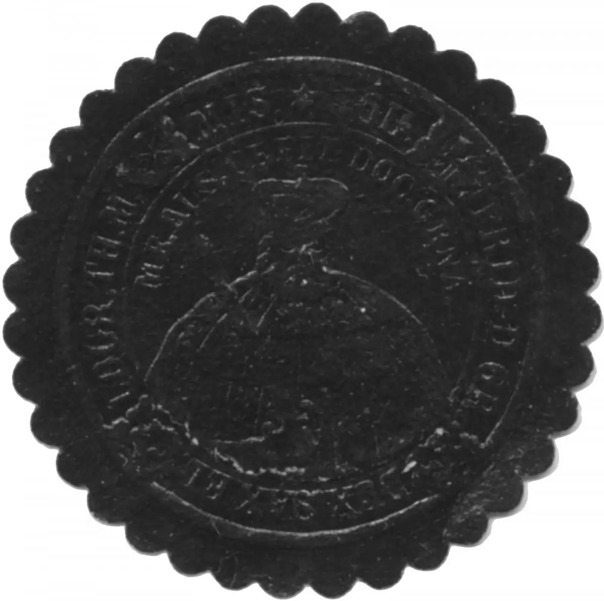 Fridrich, schwarz, geprägt, Größe/Zustand: 4 , leicht geknickt, Original Verschluss-Siegelmarke aus Papier welche früher von Behörden, Firmen etc. zum Versiegeln der Briefe benutzt wurden