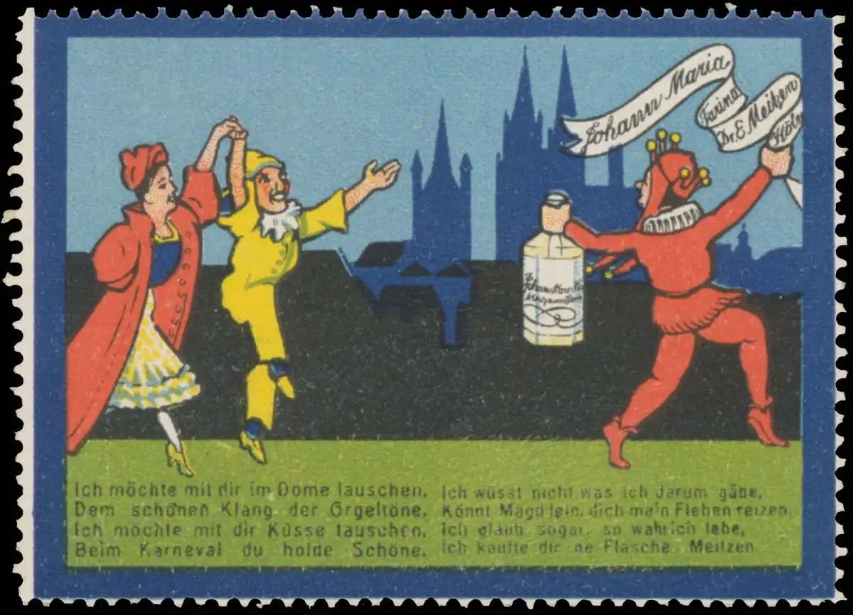 Ich möchte mit dir im Dome lauschen, dem schönen Klang der Orgeltöne. Ich möchte mit dir Küsse tauschen, beim Karneval du holde Schöne. Ich wüsst nicht was ich darum gäbe, könnt Mägdlein, dich mein Flehen reizen. Ich glaub sogar, so wahr ich lebe, ich kaufe dir ne Flasche Meitzen. , Größe/Zustand: 5x7 , guter Zustand, Original alte Reklamemarke die seinerzeit für die Werbung benutzt wurde