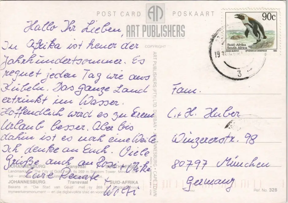Johannesburg Mehrbild-AK mit 3 Foto-Ansichten, Multi-View-Postcard 1985
