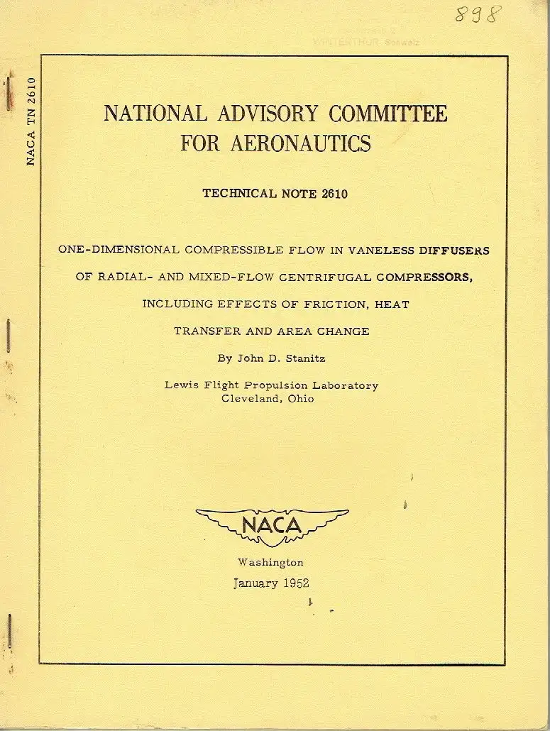 Titel: One Dimensional Compressible Flow in Vaneless Diffusers of Radial- and Mixed-Flow Centrifugal Compressors, including Effects of Friction, Heat Transfer and Area Change