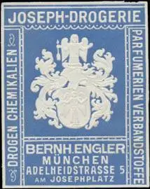 Drogen, Chemikalien, Parfümerien, Verbandstoffe, Adelheidstraße 5 am Josephplatz, Größe/Zustand: 5x4 , guter Zustand, Original alte Reklamemarke die seinerzeit für die Werbung benutzt wurde