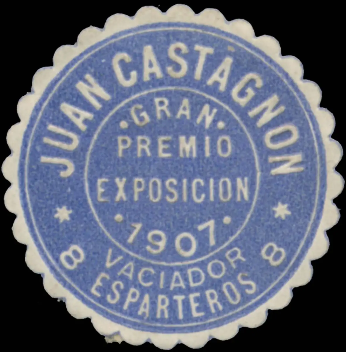 Gran Premia Exposicion 1907, Vaciador Esparteros 8, Spanien, Größe/Zustand: 3 , guter Zustand, Original Verschluss-Siegelmarke aus Papier welche früher von Behörden, Firmen etc. zum Versiegeln der Briefe benutzt wurden