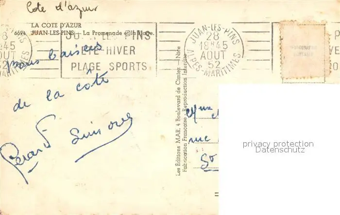 Juan-les-Pins La Promenade Juan-les-Pins postalisch gelaufen 1952 Erhaltung siehe scans [WerneD78] WernPID7