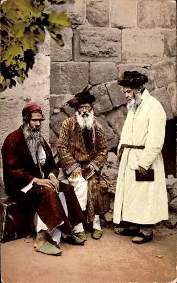 Judaika Ak Jerusalem Israel, Juifs de Jerusalem, Drei Juden unterhalten sich