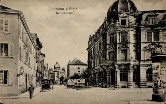 Judaika Ak Landau in der Pfalz, Reuterstraße, Litfaßsäule, Synagoge
