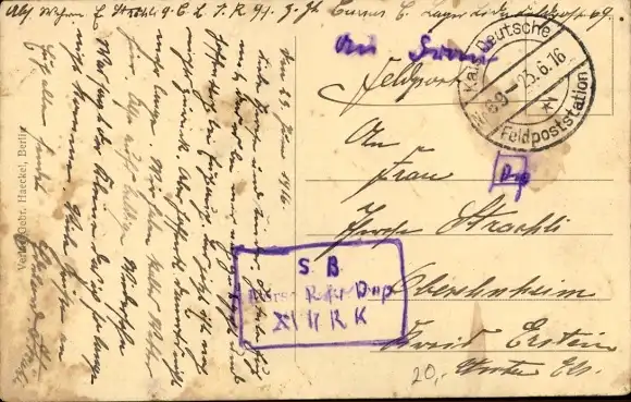 Zustand, siehe Scan, gelaufen, 1916 - ca 14 cm X 9 cm
