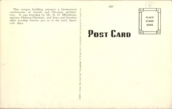 Judaika Ak Los Angeles Kalifornien USA, Erste Hebräisch Christliche Synagoge, 2209 Michigan Ave.