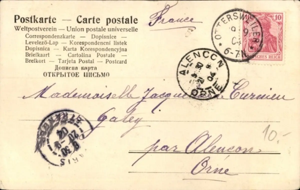 Zustand, siehe Scan, gelaufen, 1904 - ca 14 cm X 9 cm