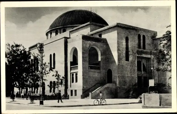 Judaika Ak Tel Aviv Jaffa Israel, The large synagogue, Straßenansicht der Synagoge