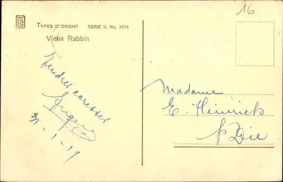 Judaika Ak Vieux rabbin, alter Rabbi, Maghreb, Lehnert & Landrock 123
