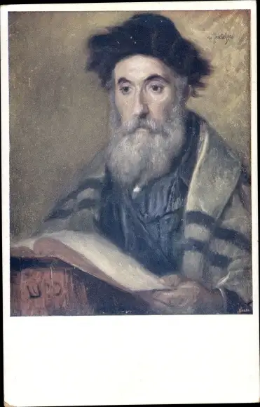 Judaika Künstler Ak Mann im Tallit, Portrait, Buch