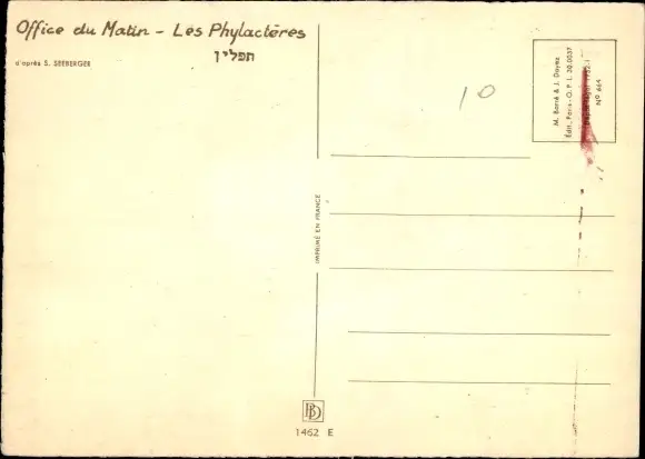 Judaika Künstler Ak Seeberger, Office du Matin, les Phylacteres, Juden