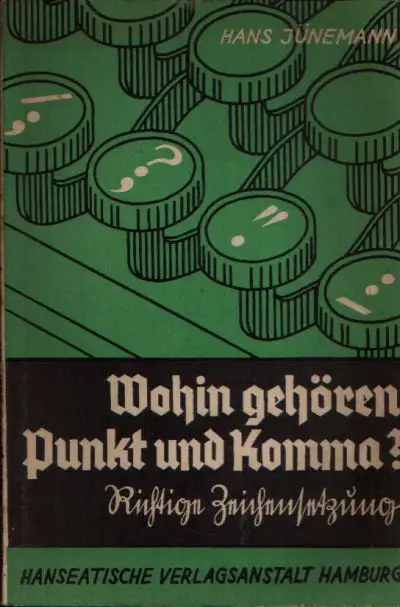 Wohin gehören Punkt und Komma; Hans Jünemann; Entwicklung der Regeln; Sprache; Regelsammlung; Beispielsammlung; Komma; Punkt; richtige Zeichensetzung; Fragezeichen; Ausrufezeichen; Sprachwissenschaft