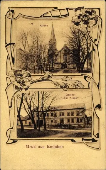 Jugendstil Ak Emleben in Thüringen, Kirche, Gasthof zur Krone