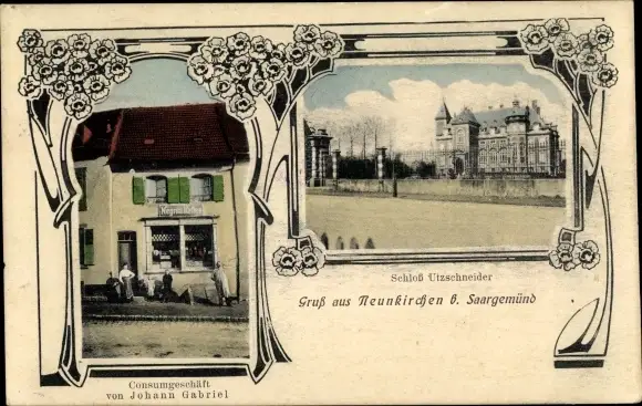 Jugendstil Ak Neunkirchen bei Sarreguemines Saargemünd Lothringen Moselle, Schloss Utzschneider