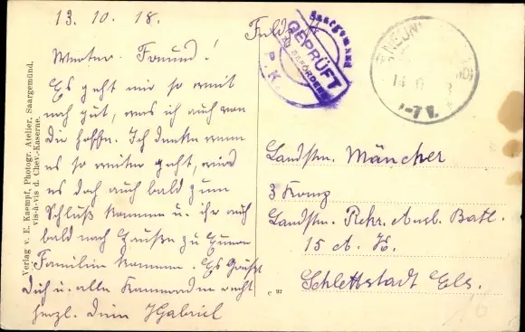 Zustand, siehe Scan, gelaufen, 1918 - ca 14 cm X 9 cm