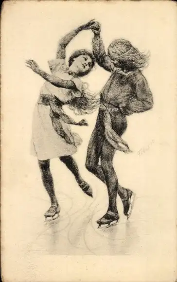 Jugendstil Künstler Ak Fidus, Schlittschuhläufer
