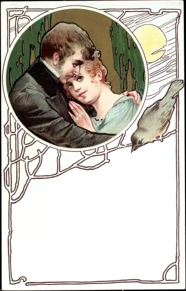 Jugendstil Künstler Ak Liebespaar im Mondschein