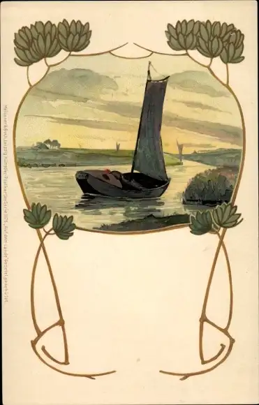 Jugendstil Künstler Litho Segelboot auf dem Wasser