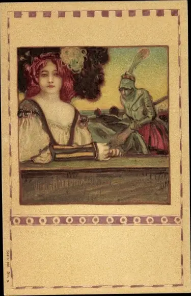 Jugendstil Litho Portrait einer rothaarigen jungen Frau, Ritter