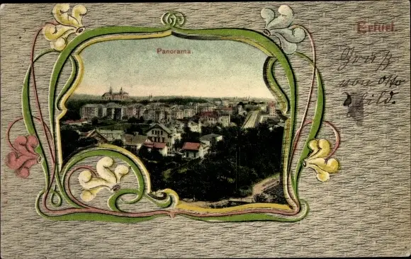 Jugendstil Passepartout Ak Erfurt in Thüringen, Panorama vom Ort