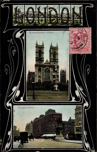 Jugendstil Passepartout Ak London City England, Westminster Abbey, Knightbridge