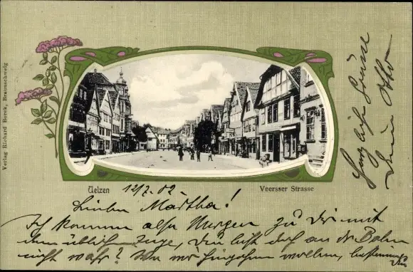 Jugendstil Passepartout Ak Uelzen in Niedersachsen, Veersser Straße