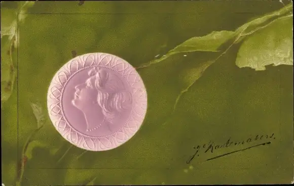 Jugendstil Präge Litho Frauenportrait, Blätter