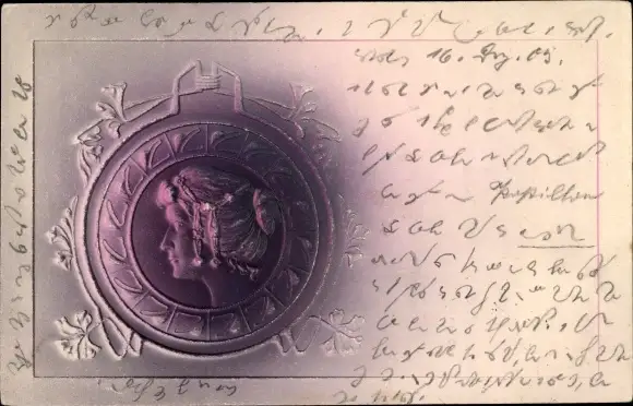 Jugendstil Präge Litho Frauenportrait mit Haarschmuck