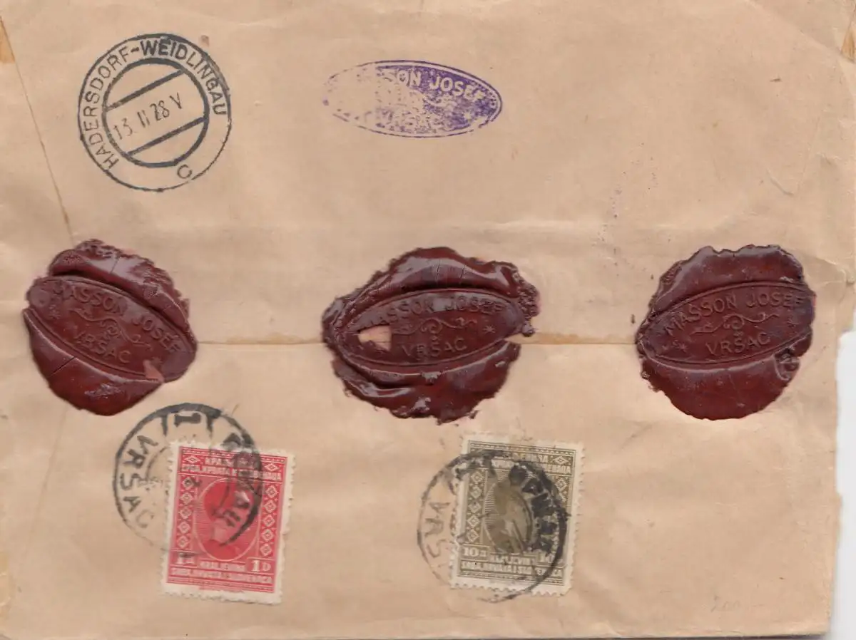 Jugoslawien: 1928: Wertbrief nach Hadersdorf/Österreich