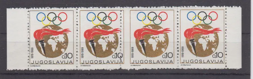 Jugoslawien Zuschlagsmarke Olympische Woche MiNo. Z 37A ** 4er-Streifen mit Fehlzähnung