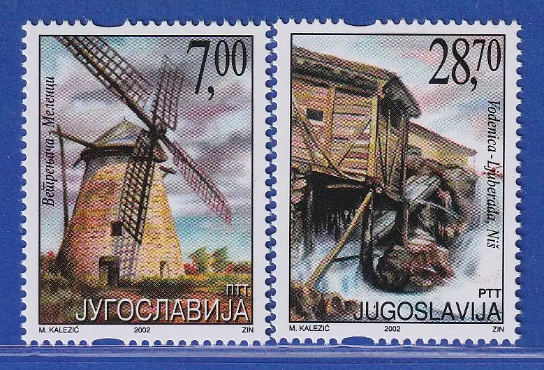 Jugoslawien 2002 Wind- und Wasser-Mühle Mi.-Nr. 3083-3084 ** / MNH