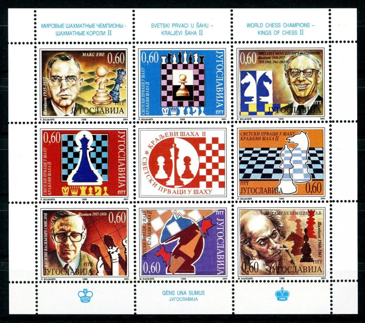 Jugoslawien 2723-2730 postfrisch als Kleinbogen Schach #GI667